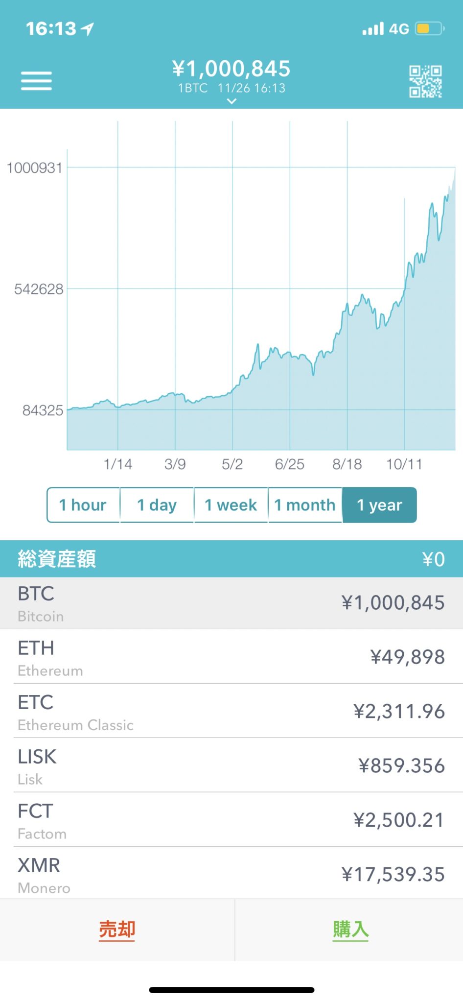 世の中には、1年前に1ビットコインが8万円台のときに100万円ぐらい購入した人がいるんでしょうね。