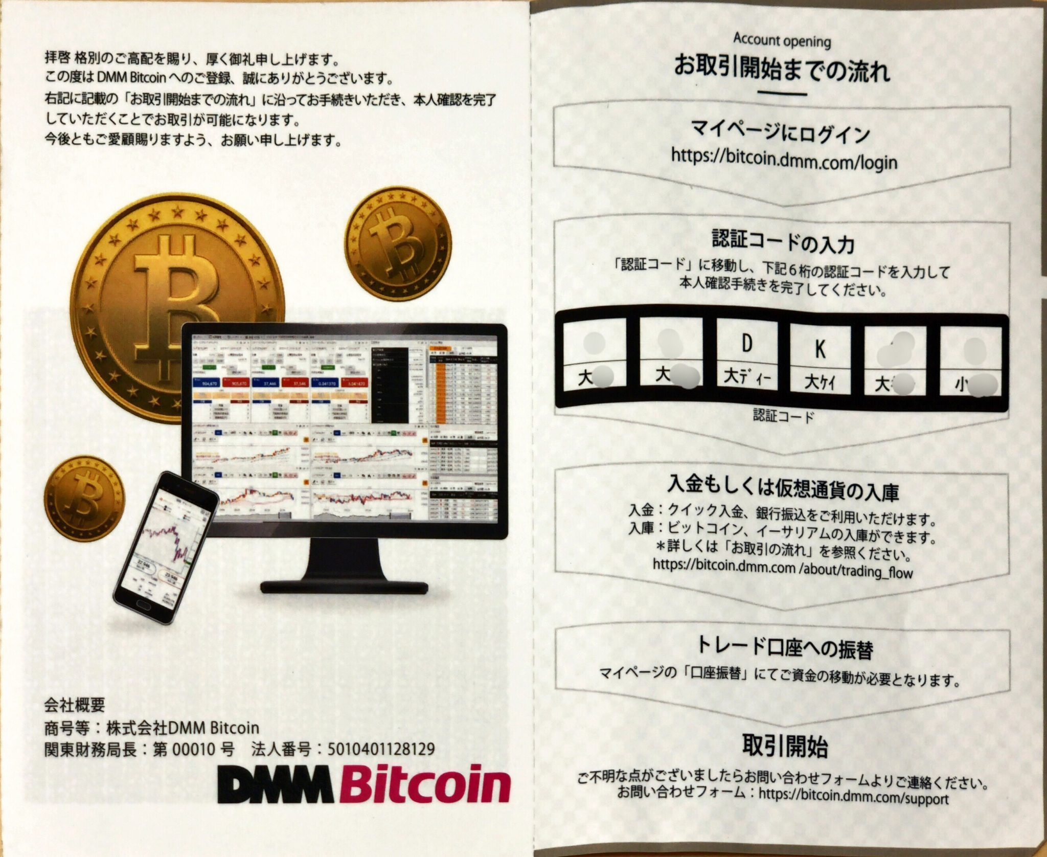 DMMBitcoinのハガキに記載がある認証コードで登録完了!