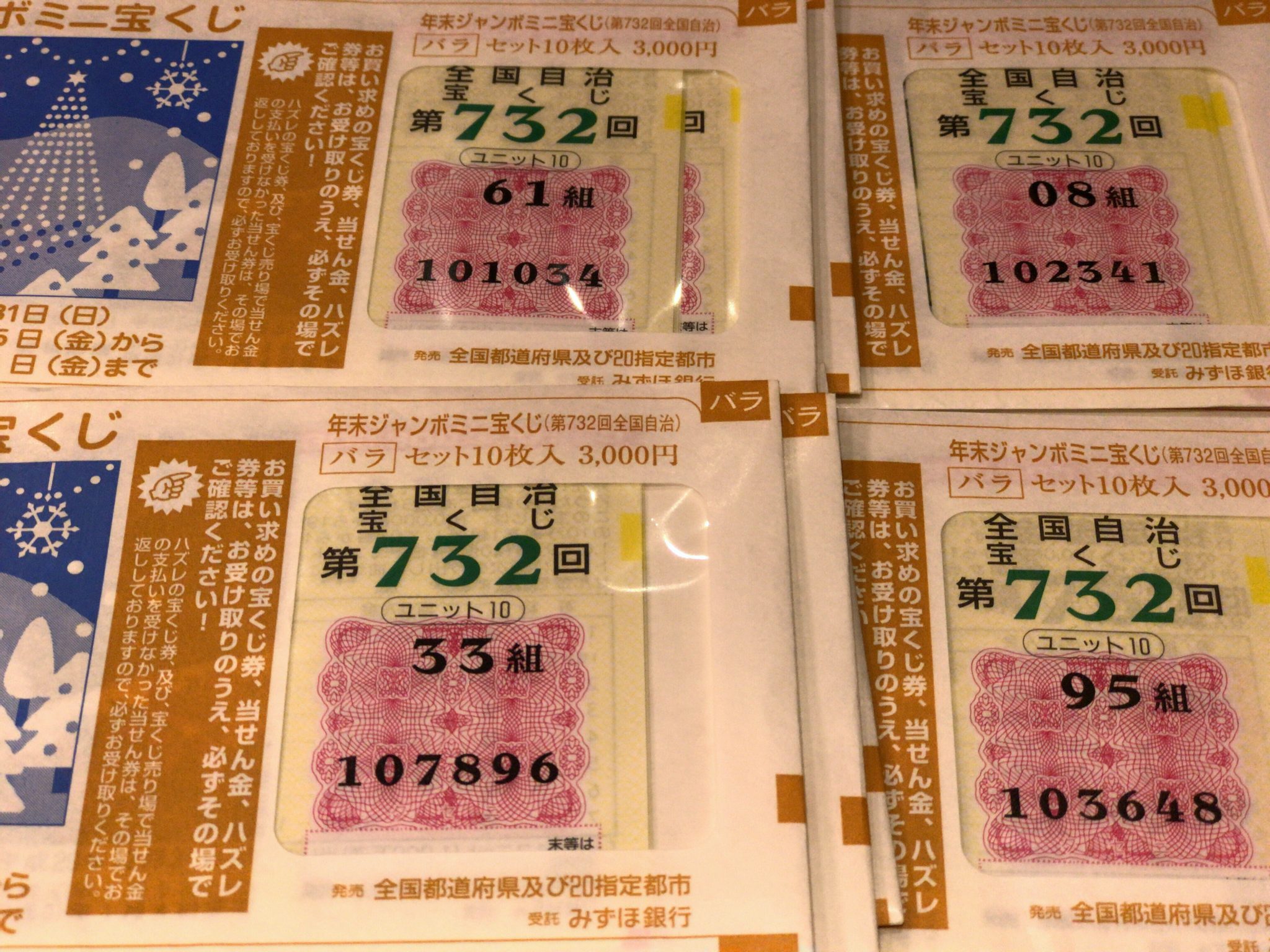 さきほど2017年「年末ジャンボ宝くじ」の当選番号が発表されました。 ということは、今日は大晦日2017年の最期の日なんですか。早いものです。 本日大晦日の朝、東京オペラシティ コンサートホールで当選番号が抽選されました。 これで何百人かの人々が1,000万円以上を大金を手にするんだよね。 既に、当選を喜んでいる人もいるんでしょうか。 僕は「年末ジャンボミニ宝くじ」を100枚、3万円分購入しました。 関連記事はこちら → 「年末ジャンボ宝くじ」を購入。1,000万円当選して借金を完済、人生をリセットした ...