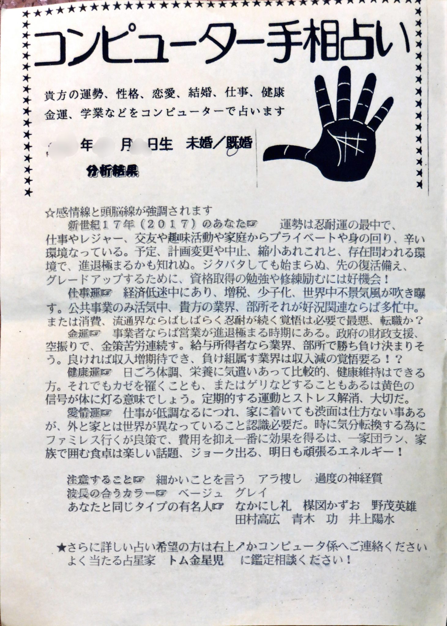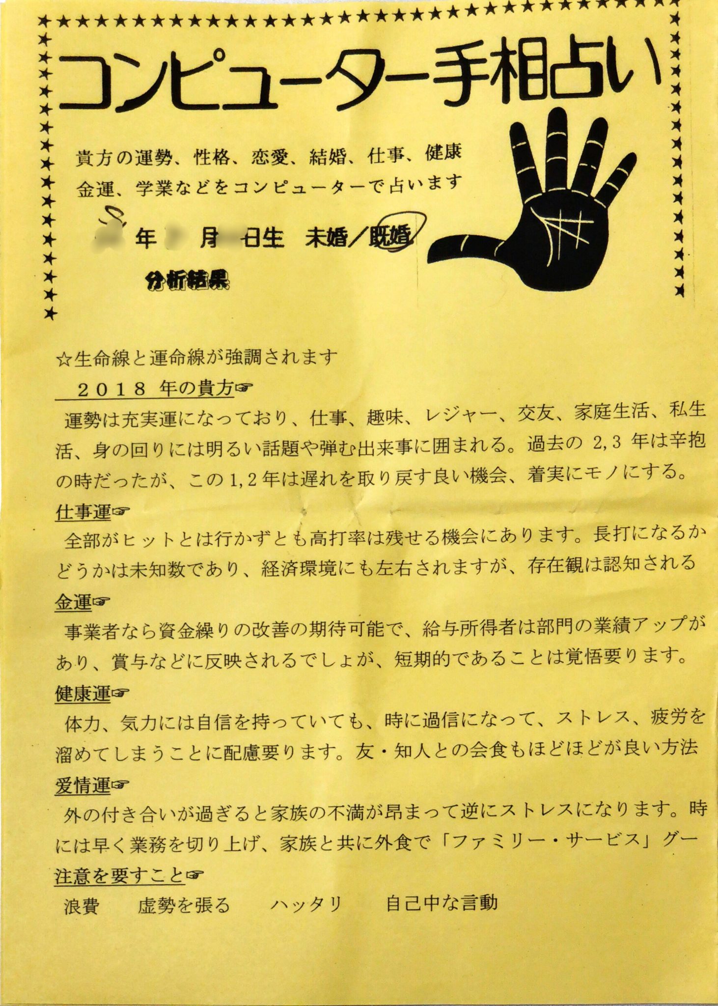 おみくじの次は、3,4年前から続けてやっているコンピュータ手相。